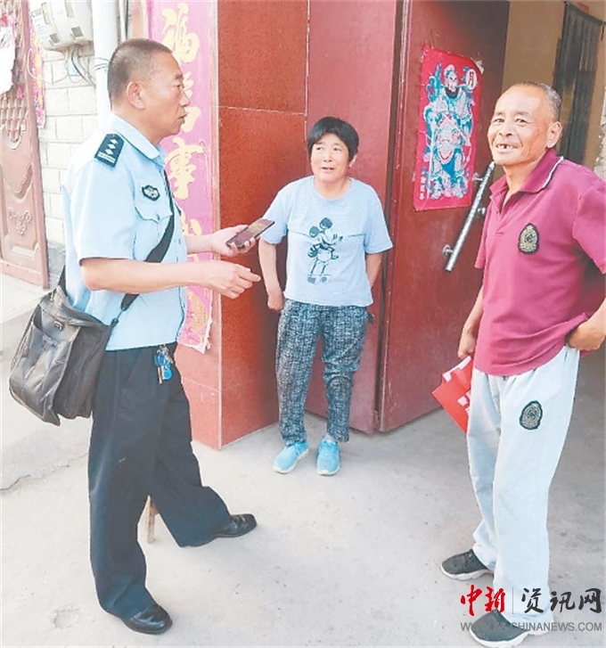中新河南網(wǎng)9月3日電(付海濤 劉記)8月28日7時,58歲的開封市順河公安分局東苑派出所社區(qū)民警童鳳山像往常一樣早早來到單位。打掃完辦公室的衛(wèi)生,老童就坐在桌子邊開始考慮一天的工作:滿洲莊村的楊某某最近不知道工作順利不順利,該去看看了;皮屯正在強(qiáng)制戒毒的魏某的老母親又該去看望了。從2012年擔(dān)任社區(qū)民警至今,他滿腔熱情、踏踏實(shí)實(shí)為群眾服務(wù),贏得了群眾的贊譽(yù)。