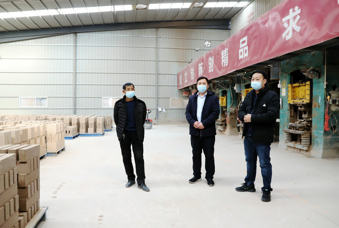 在美華耐火材料有限公司,孫志強與企業(yè)負責人一起來來到生產車間,與一線工作人員親切交談,詳細了解工作人員個人防護、消毒消殺和春節(jié)期間生活保障等情況,叮囑他們在工作和生活中做好疫情防護,注意自身安全。在禹州市宏瑞耐火材料有限公司,孫志強與企業(yè)負責人一起研究解決企業(yè)復工復產中的員工返崗、企業(yè)資金、車間改造、疫情防控等方面問題,指導企業(yè)細化、完善復工方案和防控預案。