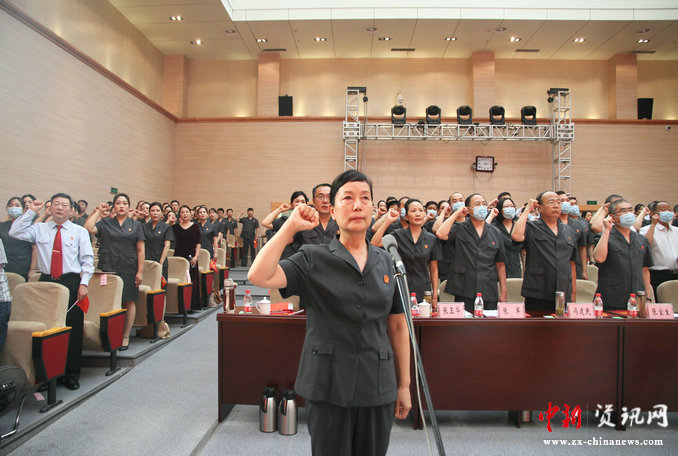 表彰大會(huì)在雄壯的國(guó)歌聲中拉開(kāi)序幕,全體黨員起立,首先重溫了入黨誓詞。許昌中院黨組書(shū)記、院長(zhǎng)韓玉芬領(lǐng)誓,黨員們面對(duì)鮮紅的黨旗緊握右拳,用錚錚誓言表達(dá)對(duì)黨的忠誠(chéng),進(jìn)一步堅(jiān)定初心、明確使命。
