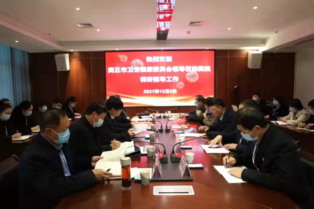 中新河南網(wǎng)商丘12月2日電(刁玉磊 通訊員 鐘敏)12月2日,商丘市衛(wèi)健委黨組書記、主任李德懷,市衛(wèi)健委黨組成員、副主任王玉棟、范祥杰、劉建華、楊永建,一級(jí)調(diào)研員朱伯健蒞臨商丘市立醫(yī)院調(diào)研指導(dǎo)工作,商丘市衛(wèi)健委黨組成員、市立醫(yī)院黨委書記、院長(zhǎng)郭偉,院領(lǐng)導(dǎo)崔靜、周剛、張連濤、張世璽、梁賢棟及相關(guān)職能科室負(fù)責(zé)人陪同調(diào)研。