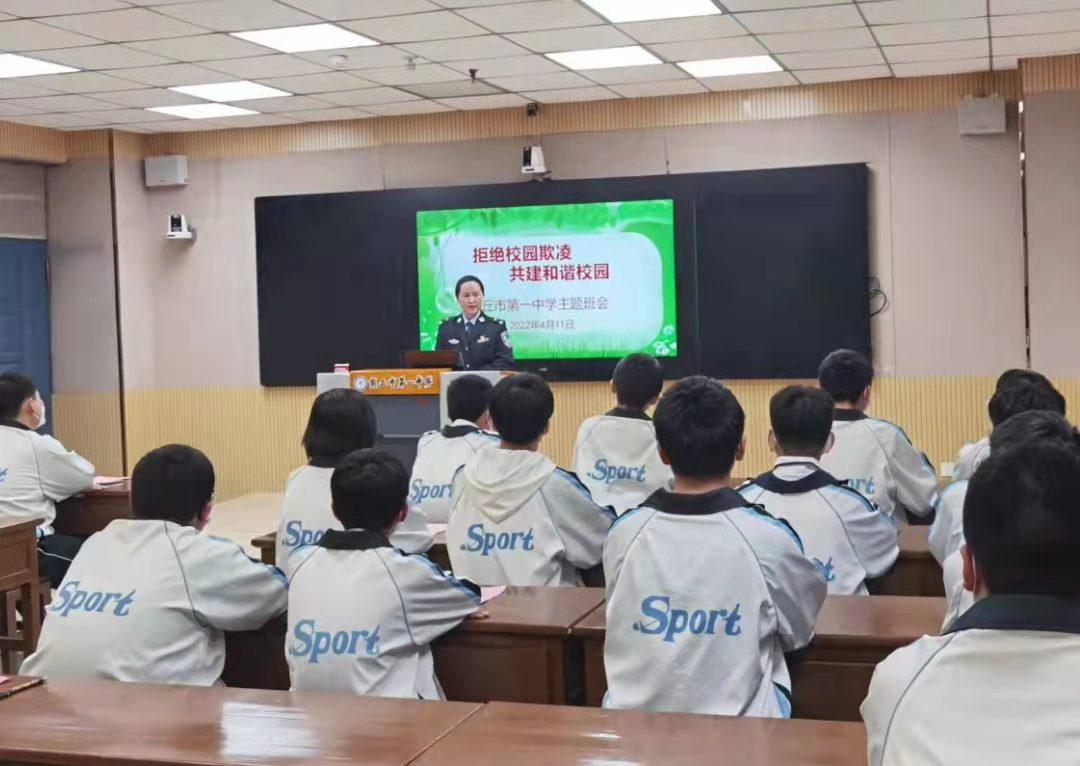 主題班會(huì)中,首先分析了當(dāng)前存在的社會(huì)不良風(fēng)氣并通報(bào)了近期全國發(fā)生的幾起典型校園欺凌案例。其次邀請(qǐng)商丘市校園欺凌宣講團(tuán)成員前進(jìn)分局張香梅警官做《拒絕校園欺凌,做未來世界青少年》的法制報(bào)告。
