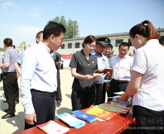 儀式結(jié)束后,汝南法院黨組書(shū)記、院長(zhǎng)肖萌菊與相關(guān)單位主要負(fù)責(zé)人來(lái)到宣傳展臺(tái)前,觀看了各類環(huán)境保護(hù)、法律法規(guī)的宣傳展板,并向群眾發(fā)放宣傳資料。