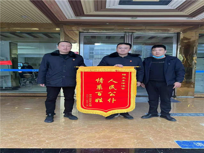 中新河南網(wǎng)12月15日電(李克選 魏錁 張冠)12月15日上午,買受人趙某將兩面寫有“人民公仆 情系百姓 ”和“懷愛民之心 辦利民之事 ”的錦旗,送到南陽(yáng)市臥龍區(qū)人民法院執(zhí)行干警和拍成法輔機(jī)構(gòu)負(fù)責(zé)人手中,為臥龍法院和拍輔機(jī)構(gòu)在其購(gòu)買房產(chǎn)過(guò)程中,高效執(zhí)行、一心為民的作風(fēng)表示由衷感謝。