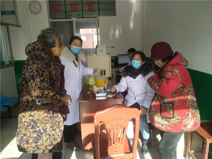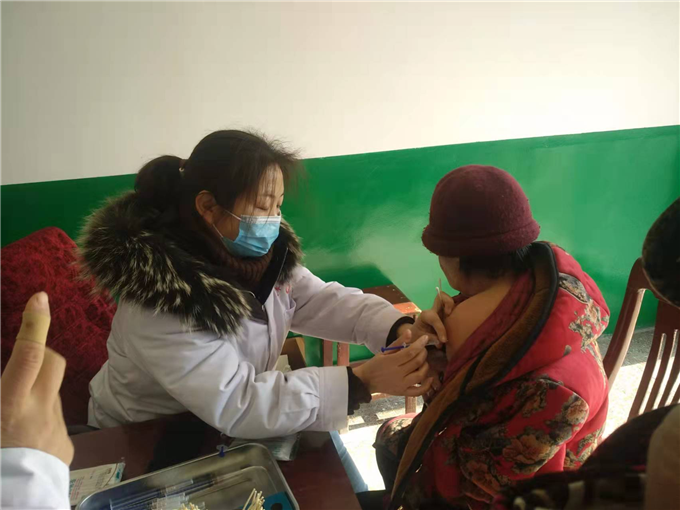 1月15號,在衛(wèi)生院公共衛(wèi)生科科長燕磊帶領(lǐng)下,護(hù)士吳曉燕、薛紅粉,大塊地衛(wèi)生所魯紅俠、八迭堂衛(wèi)生所曹彥峰、石梯村衛(wèi)生所賈紅濤來到吳崗村衛(wèi)生所。在北管區(qū)四村(石梯村、吳崗村、八迭堂村、大塊地村)兩委的大力宣傳下,不少群眾(多數(shù)是上歲數(shù)的老年人)事前已知曉此事,他們?nèi)齼蓛申懤m(xù)來到吳崗村衛(wèi)生所,由醫(yī)護(hù)人員為他們注射疫苗。