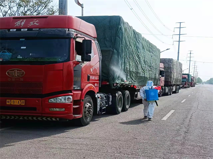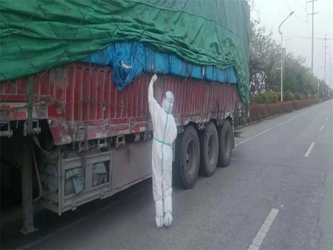 周六上午9點(diǎn),第一批6輛運(yùn)棉車隊(duì)準(zhǔn)時(shí)到達(dá)新野縣某棉紡織上市公司指定區(qū)域。等待在那里的“全副武裝”工作人員迅速上前進(jìn)行人員、貨物檢查核對(duì),核對(duì)結(jié)果與網(wǎng)上申報(bào)一致后,專業(yè)人員對(duì)貨物、包裝物、車輛和隨車承運(yùn)人員進(jìn)行了“核酸”采樣,并第一時(shí)間送進(jìn)專業(yè)實(shí)驗(yàn)室進(jìn)行檢測(cè)。在等待結(jié)果的間隙,專業(yè)人員又對(duì)貨物、車輛和承運(yùn)人員以及周圍環(huán)境進(jìn)行了專業(yè)無(wú)死角消殺。周日上午運(yùn)到的4輛貨物也到達(dá)指定地點(diǎn)庫(kù)房,嚴(yán)格按照程序第一時(shí)間進(jìn)行了專業(yè)核對(duì)消殺。至此該批進(jìn)口美國(guó)的價(jià)值105萬(wàn)美元的10車260噸棉花全部疫情防控消殺完畢,安全準(zhǔn)時(shí)交付企業(yè)入庫(kù),沒(méi)有耽誤生產(chǎn)使用。