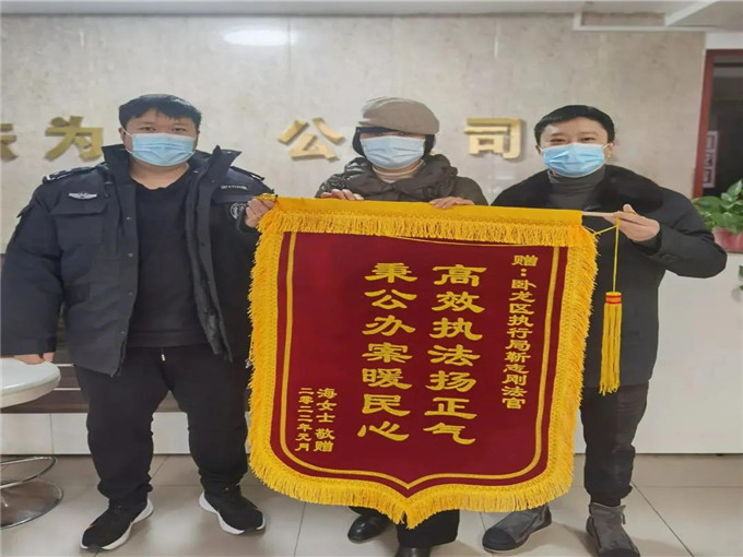 上午剛一上班,申請執(zhí)行人海某便帶著一面印有“高效執(zhí)法揚正氣 秉公辦案暖民心”的錦旗來到臥龍區(qū)人民法院執(zhí)行局,親手交到執(zhí)行干警靳志剛的手里,對執(zhí)行干警在工作中認真負責、積極作為、無私為民、高效執(zhí)行的辛勤付出表示衷心的感謝和敬意。