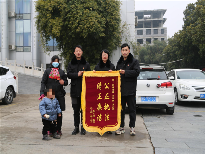 當(dāng)程某委托姐姐將一面寫著“清正廉潔,公正執(zhí)法”錦旗送到全惠雅手中時,還在懵圈中的全惠雅稱:“這真是一份意外的鼓勵。”