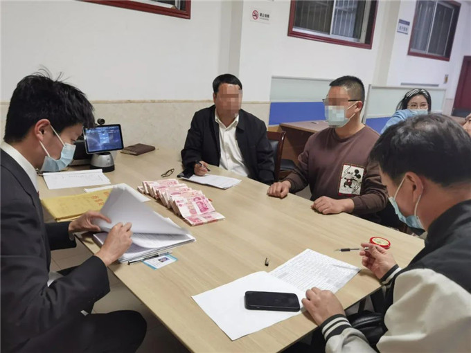 執(zhí)行行動中,陳旭及其團隊干警對房屋占有使用等情況進行現(xiàn)場調(diào)查,并張貼騰房公告,為啟動評估拍賣程序做準備。眼看干警動了真格,被執(zhí)行人家屬立即聯(lián)系了被執(zhí)行人。得知自己的房產(chǎn)真的將被掛拍,被執(zhí)行人終于認識到問題的嚴重性,慌忙聯(lián)系陳旭說愿意還錢。晚上11時,被執(zhí)行人通過手機轉(zhuǎn)賬13萬元加現(xiàn)金16萬元的方式,將所欠執(zhí)行款支付給申請執(zhí)行人,案件圓滿解決。