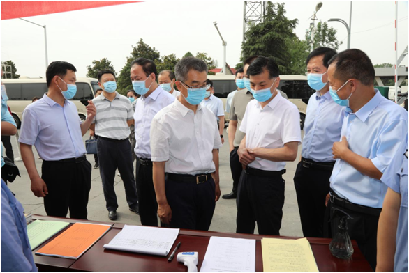 農(nóng)業(yè)農(nóng)村部農(nóng)業(yè)機械化管理司司長冀名峰在京港澳高速漯河南站召陵區(qū)農(nóng)機跨區(qū)作業(yè)服務(wù)點查看跨區(qū)作業(yè)車輛登記及疫情防控情況。