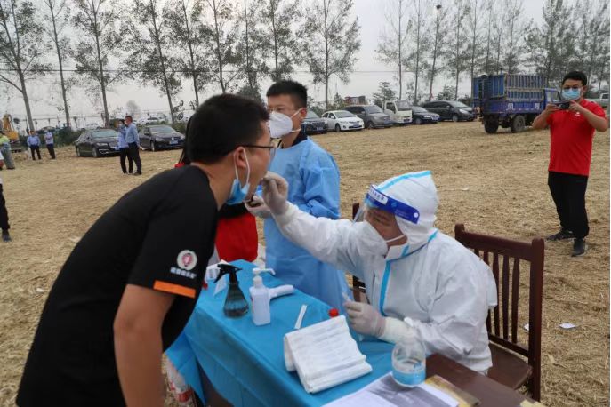 演示會現(xiàn)場,嚴格疫情防控,測量體溫,核酸檢測。