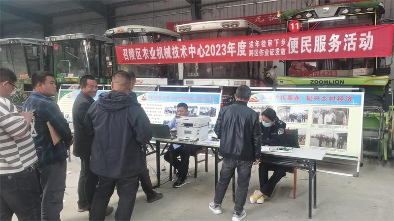 中新河南網(wǎng)5月11日電(任錢坤 李江濤 馬朝陽)三夏麥?zhǔn)占磳⒌絹恚?lián)合收割機陸續(xù)從庫房駛出,維修保養(yǎng),準(zhǔn)備投入夏糧收獲。為有效預(yù)防和減少農(nóng)機事故,使農(nóng)機駕駛操作人員能夠安全規(guī)范作業(yè),確保夏收順利進行。近期,河南省漯河市召陵區(qū)農(nóng)業(yè)機械技術(shù)中心本著“服務(wù)三農(nóng),方便機手,方便群眾”的原則,積極組織開展送年檢審下鄉(xiāng)便民服務(wù)活動,將便民服務(wù)送到群眾家門口。
