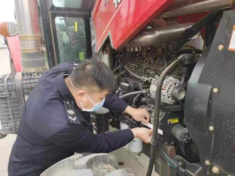 檢驗現(xiàn)場,工作人員嚴(yán)格按照檢驗程序和標(biāo)準(zhǔn),重點對拖拉機、聯(lián)合收割機的外觀、發(fā)動機號、車架號、照明裝置、制動系統(tǒng)和轉(zhuǎn)向系統(tǒng)等進行檢驗,一律做到“人、機、證”三見面,對檢驗中不合格的農(nóng)機車輛,要求立即整改,有效消除安全隱患。