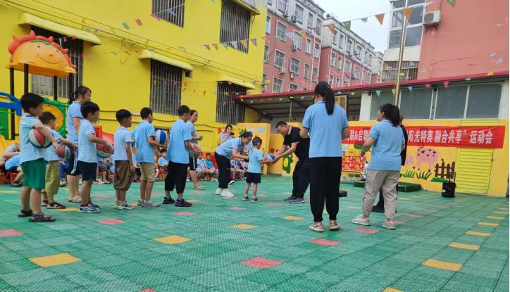 特奧運(yùn)動(dòng)不僅可以增強(qiáng)健康體魄,更能幫助殘疾人發(fā)揮潛能、增強(qiáng)自信,分享快樂(lè)、融入社會(huì)。融合,需要不斷健全完善工作機(jī)制,依托殘健融合,整合各方資源,協(xié)調(diào)發(fā)展。本次特奧趣味運(yùn)動(dòng)會(huì)根據(jù)智力殘障兒童的實(shí)際情況,組織小運(yùn)動(dòng)員們?cè)诮鹂涤變簣@融合伙伴們的指導(dǎo)和陪伴下進(jìn)行了定點(diǎn)投籃、短跑、立定跳遠(yuǎn)、接力賽等安全性高、趣味性強(qiáng)的運(yùn)動(dòng)項(xiàng)目。