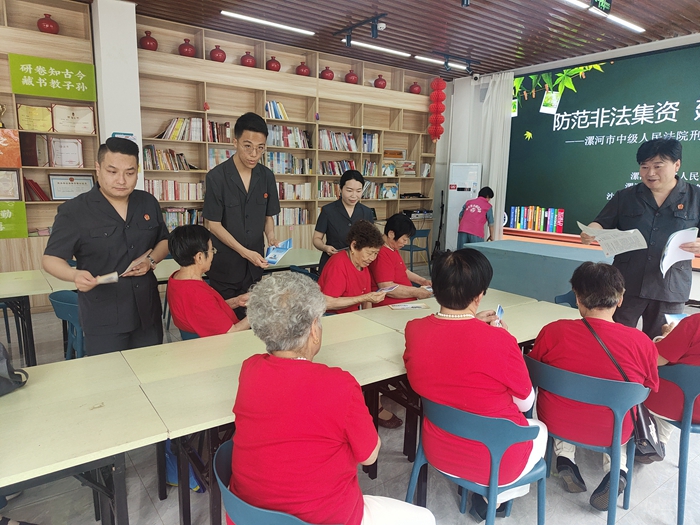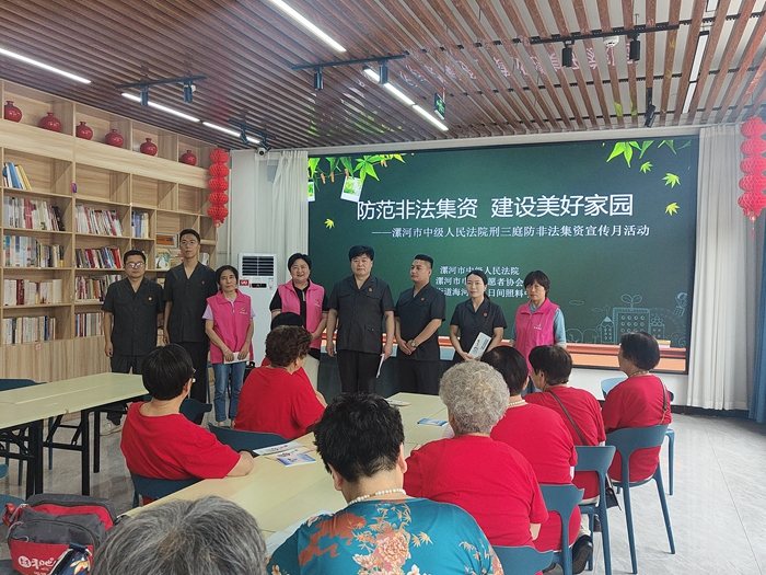 中新河南網(wǎng)6月4日電(任錢(qián)坤)隨著生活水平的提高,老年群體也逐漸從傳統(tǒng)消費(fèi)向服務(wù)型消費(fèi)拓展。各類(lèi)會(huì)損害老年人合法權(quán)益的違法犯罪行為屢見(jiàn)不鮮,為增強(qiáng)轄區(qū)老年群體對(duì)集資詐騙的防范意識(shí),提高自我保護(hù)能力,6月4日下午,河南省漯河市中級(jí)人民法院聯(lián)合漯河市巾幗志愿者協(xié)會(huì)、沙北街道海河社區(qū)日間照料中心舉行“防范非法集資建設(shè)美好家園”主題宣傳活動(dòng)。