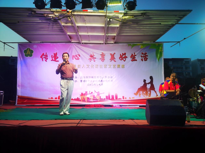 近日,漯河市郾城區(qū)殘聯(lián)在龍塔街道淞江小區(qū)廣場舉辦了一場別開生面的“文化進社區(qū)”文藝演出活動,此次活動以“愛心傳遞共享美好生活”為主題,通過藝術的形式,將愛心與關懷傳遞給社區(qū)內(nèi)的廣大居民,尤其是殘疾人朋友們。演出內(nèi)容既有《包青天》《打金枝》等傳統(tǒng)戲劇,也有表達殘疾人堅韌不拔自立自強精神的配樂詩朗誦《我心飛翔》、歌曲《擁抱夢想》等節(jié)目,精彩的演出贏得了社區(qū)群眾的陣陣掌聲。