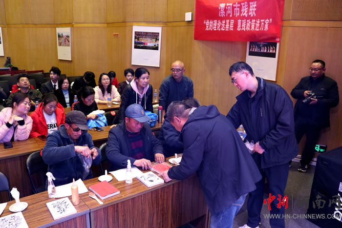 互動(dòng)環(huán)節(jié)中,殘疾人事業(yè)相關(guān)知識(shí)搶答緊張激烈,現(xiàn)場(chǎng)觀眾踴躍參與,在趣味問答中普及了惠殘助殘相關(guān)政策法規(guī)、殘疾人權(quán)益保障知識(shí);漯河市書法家協(xié)會(huì)、召陵區(qū)美術(shù)家協(xié)會(huì)的藝術(shù)家們現(xiàn)場(chǎng)揮毫潑墨,筆走龍蛇間勾勒出山河美景與人生感悟,作品傳遞出堅(jiān)韌不拔的精神力量;市非遺文創(chuàng)體驗(yàn)館帶來的《非遺拓印》展示,讓觀眾近距離感受傳統(tǒng)文化魅力,親手體驗(yàn)拓印技藝,在動(dòng)手實(shí)踐中深化文化認(rèn)同。