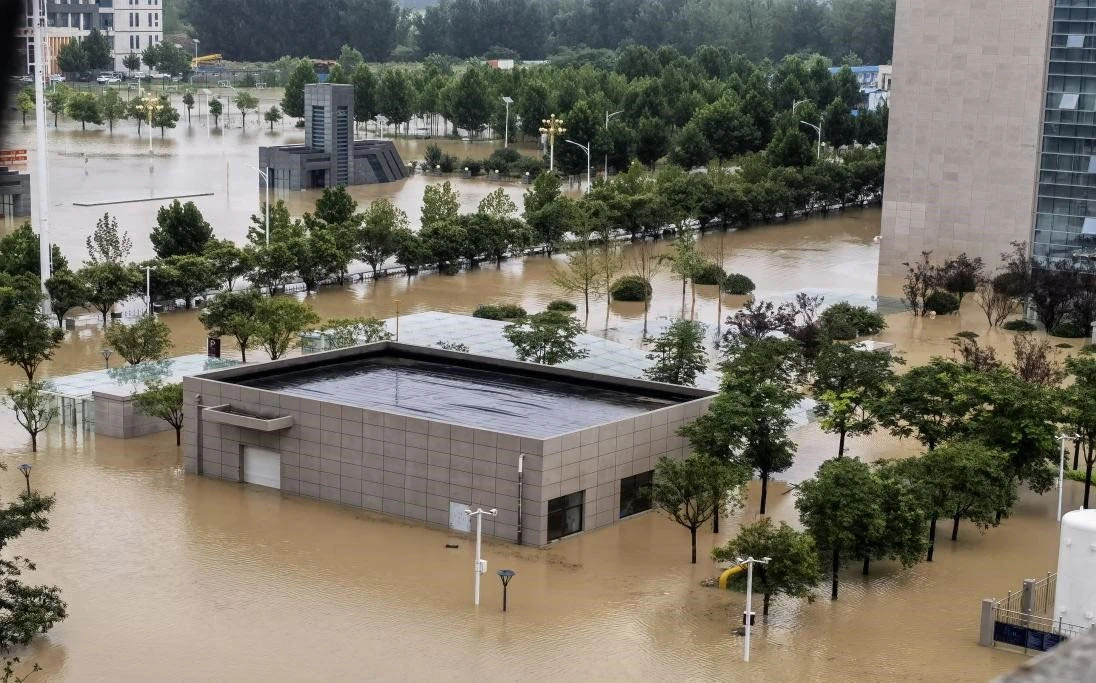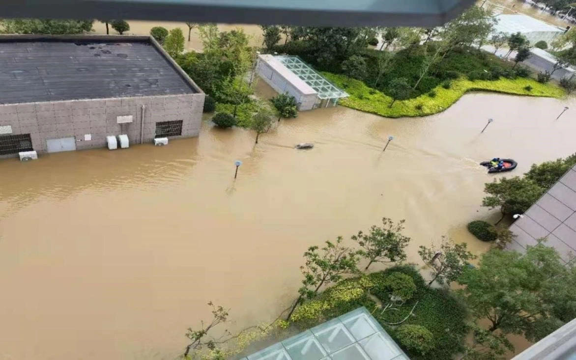 圖為2021年7月20日星期二專家公寓對面的3號樓1樓水深齊胸