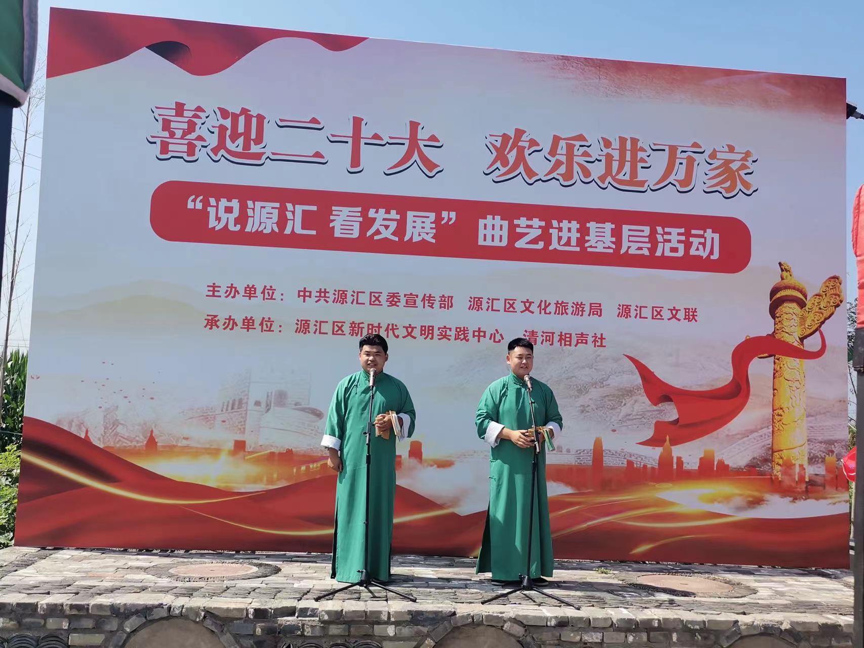 當(dāng)天,恰逢由中共漯河源匯區(qū)委宣傳部、源匯區(qū)文化旅游局、源匯區(qū)文聯(lián)主辦的喜迎二十大歡樂(lè)進(jìn)萬(wàn)家“說(shuō)源匯 看發(fā)展”曲藝進(jìn)基層活動(dòng)也在村里舉行,一段段精彩的相聲、戲曲唱段等不時(shí)贏得觀眾的陣陣掌聲;上至年近八旬的老奶奶,下至十幾歲的學(xué)生,婦孺老少有的搟面皮,有的包餃子,有的 和面……大家分工合作,有說(shuō)有笑,邊包餃子邊欣賞節(jié)目,一派其樂(lè)融融。