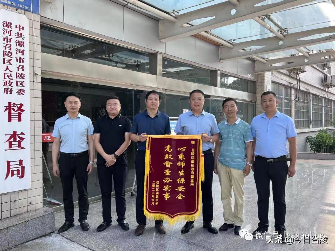 中新河南網(wǎng)8月15日電(任錢坤 )8月15日,河南省漯河市召陵區(qū)實(shí)驗(yàn)中學(xué)為漯河市召陵區(qū)人民政府督查局送來(lái)一面“心系師生保安全、高效督查辦實(shí)事”的錦旗,對(duì)召陵區(qū)委區(qū)政府督查局為保障師生安全做出的貢獻(xiàn)表示感謝。