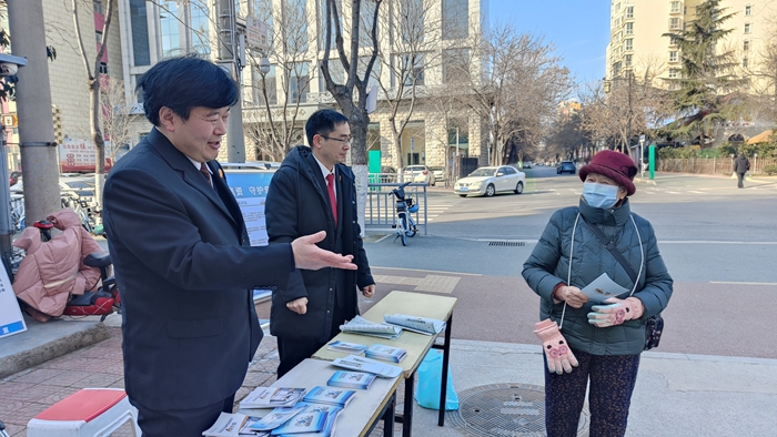 中新河南網(wǎng)1月22日電(任錢坤 通訊員:李江曼) “高收益必然伴隨高風(fēng)險”、“參與非法集資風(fēng)險自擔(dān)、責(zé)任自負(fù)”……1月22日上午,河南省漯河市中級人民法院法官們在黃山路陽光世紀(jì)苑小區(qū)門前擺起長桌、扯上橫幅,放上宣傳展板,法官們化身“宣傳員”,向路過的群眾宣講防范非法集資常識和案例