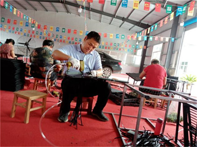 在另一個藤編車間,由于實行的是訂單化計件生產(chǎn)機制,經(jīng)過培訓(xùn)的村民們,甚至可以把原料拿回家,利用閑暇時間藤編各類躺椅和家具。隔壁的廠房則是過塑印花車間,承接各類裝飾、廣告印制,也安置了不少村民就業(yè)。這幾個生產(chǎn)車間,集中體現(xiàn)了各級政府對肖營村產(chǎn)業(yè)扶貧的優(yōu)異成果,真正把扶貧模式由“輸血”變?yōu)榱?ldquo;造血”。