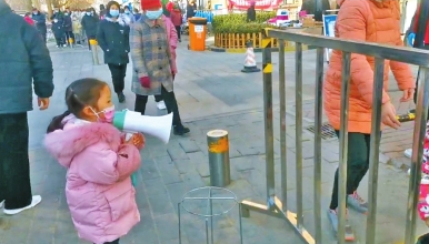 記者看到趙怡茹小朋友拿著小喇叭對來做核酸檢測的人員喊道:“保持一米距離,戴好口罩,提前亮碼。”據(jù)孩子媽媽付艷萍說:“主要是我要來當(dāng)志愿者,家里沒人,就帶她一起來了,正好可以鍛煉鍛煉她。”