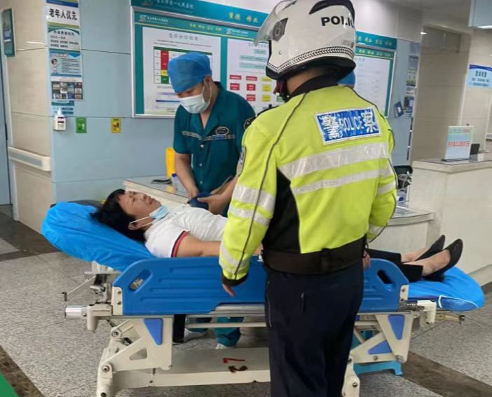 情況緊急,時間就是生命。隊員何岸青立即通過對講機向中隊長匯報情況,請求開辟一條綠色生命通道。隊員夏松璽立即打開警燈,拉響警笛,護送求助車輛極速前往醫(yī)院,沿途鐵騎隊員按照中隊長指令在主要路口、易堵路段實施交通引導(dǎo),保證救助車輛順利通過,在鐵騎隊員的護送下,平時20多分鐘的路程僅僅用時5分鐘就順利到達醫(yī)院。