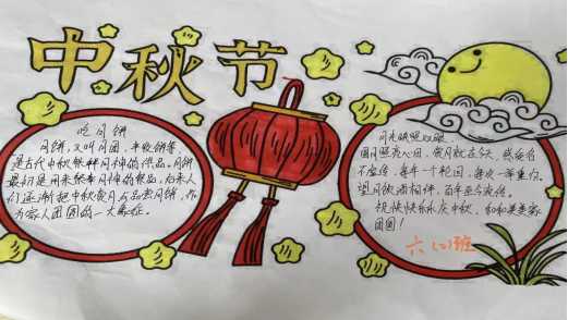 本次活動(dòng),讓孩子們充分感受到了中秋節(jié)的喧鬧氣氛,明白中秋節(jié)為什么吃月餅,使孩子們?cè)诨顒?dòng)中學(xué)會(huì)了與人共享,又鍛煉了他們的動(dòng)手操作能力,孩子們?cè)趯W(xué)校提前過了一個(gè)別樣的中秋節(jié)!也讓老師們感觸到,校園活動(dòng)有利于孩子身心健康的成長(zhǎng),也能夠啟發(fā)孩子的智慧。學(xué)校教育是一個(gè)人成長(zhǎng)過程中的一個(gè)重要環(huán)節(jié),而文化教育又是學(xué)校教育中的一個(gè)重要組成部分。所以,校園活動(dòng)在孩子的發(fā)展過程中有著十分重要的意義。因此,各班級(jí)也創(chuàng)作了手抄報(bào)和黑板報(bào),老師們還和孩子們商定在中秋節(jié)的那天,家里吃團(tuán)圓飯的時(shí)候記得祝愿自己的爸爸媽媽、爺爺奶奶身體安康,并商定中秋節(jié)的晚上大家一定要賞月。