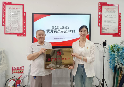 安陽(yáng)市后倉(cāng)街社區(qū)頒發(fā)“優(yōu)秀黨員示范戶”獎(jiǎng)牌,弘揚(yáng)黨員榜樣力量