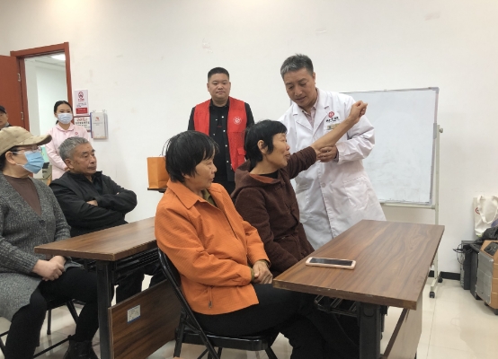 10月20日上午,社區(qū)活動室的義診現(xiàn)場,前來咨詢就診的轄區(qū)居民絡繹不絕。工作人員引導老人有序入座,醫(yī)務人員手把手教老人們指認穴位,講解按摩方法,并送上中藥保健包。同時還為老年人現(xiàn)場針灸,詳細詢問近期身體狀況、提供就醫(yī)用藥建議和健康生活指南。