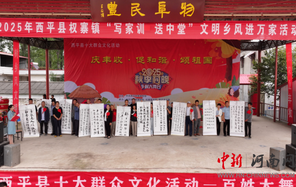 鎮(zhèn)政協(xié)聯(lián)絡(luò)組充分發(fā)揮橋梁紐帶作用,邀請(qǐng)文藝工作者,動(dòng)員委員深入挖掘鄉(xiāng)土文化資源,保障了活動(dòng)的順利開(kāi)展。晚會(huì)鑼鼓喧天充滿喜慶,秧歌曼舞,金秋凝輝,豫劇悠揚(yáng),贊豐收,生動(dòng)展現(xiàn)了新時(shí)代農(nóng)民精神風(fēng)貌。“寫(xiě)家訓(xùn)送中堂”活動(dòng)成為最大亮點(diǎn),書(shū)法名家將崇德向善、勤儉持家的優(yōu)良家風(fēng)凝練成幅,免費(fèi)贈(zèng)予農(nóng)戶裝點(diǎn)廳堂,讓文明新風(fēng)吹遍千家萬(wàn)戶。
