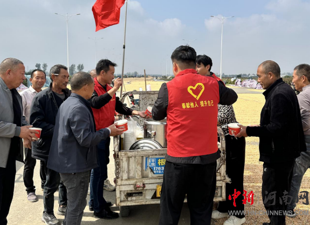 “群眾在哪兒,黨員就服務(wù)到哪兒。”趙橋村黨支部組建“金穗先鋒”黨員志愿服務(wù)隊(duì),分片包干、輪班作業(yè)。在晾曬現(xiàn)場,身著紅馬甲的黨員干部們穿梭在糧堆間,翻曬、裝袋、搬運(yùn)。到了飯點(diǎn),黨員干部們變身“炊事員”,將一份份熱菜熱飯打包分裝,準(zhǔn)時送往各晾曬點(diǎn)。正在翻曬玉米的村民感慨道:“從收割到晾曬,再到吃上熱乎飯,全靠黨員干部幫忙!”