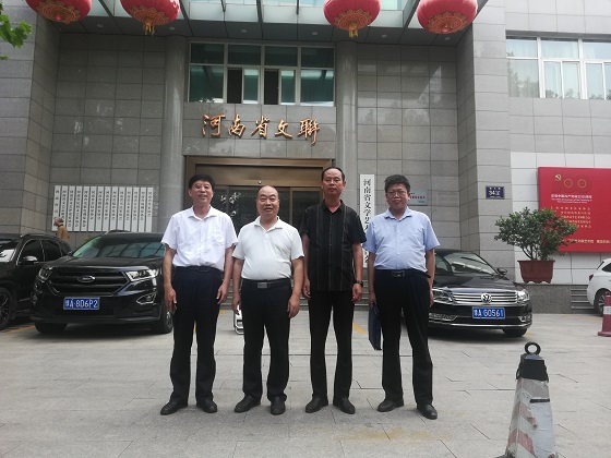 淅川范蠡研究會考察組與河南省民間文藝家協(xié)會秘書長劉炳強(qiáng)(左二)在河南省文聯(lián)門前合影