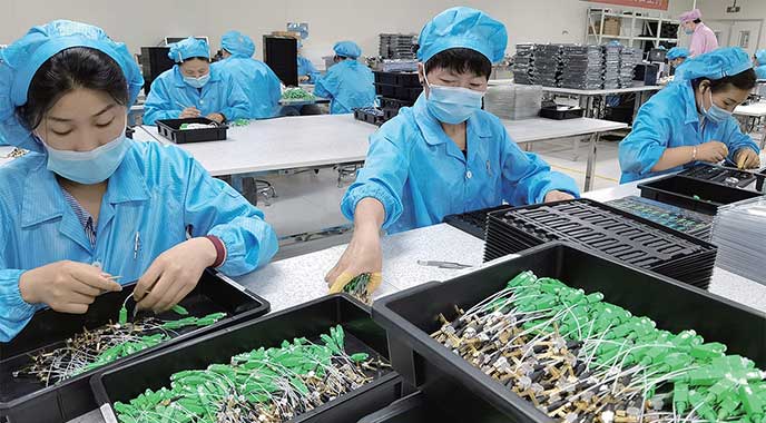 7月6日,在河南省佰訊光器件有限公司的廠房?jī)?nèi),工人正開(kāi)足馬力生產(chǎn)。近年,濟(jì)源示范區(qū)持續(xù)加大新興產(chǎn)業(yè)發(fā)展力度,推動(dòng)產(chǎn)業(yè)結(jié)構(gòu)優(yōu)化升級(jí)。