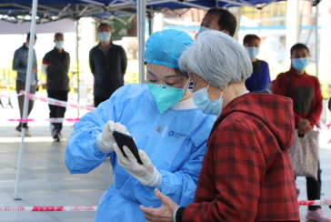 “小朋友,核酸檢測可以走綠色通道……”在普陀區(qū)長征鎮(zhèn)某小區(qū),中國太保產(chǎn)險(xiǎn)上海分公司員工施星民正緊張地在小區(qū)核酸檢測現(xiàn)場維持秩序,奮戰(zhàn)志愿抗疫一線。