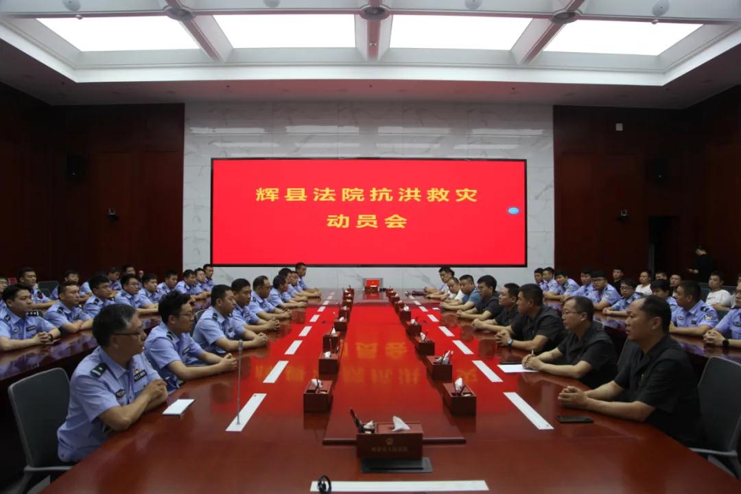 為打贏抗洪救災這場硬仗,根據(jù)輝縣市委、市政府部署,7月21日晚上7點,輝縣市法院召開抗洪救災動員會。黨組成員、副院長高世陽傳達了防汛抗洪精神并作動員講話。黨組成員、執(zhí)行局局長魏新濤對參戰(zhàn)人員任務作了周密安排。會上成立了由15名黨員干警組成的“黨員突擊隊”。輝縣市法院70余名干警將全力以赴參戰(zhàn),防大汛、抗大洪、搶大險、救大災,保護人民群眾生命財產(chǎn)安全。