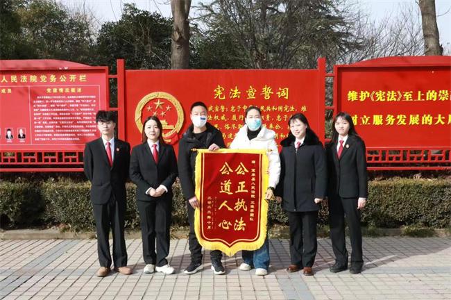 中新河南網(wǎng)1月19日電(李源)一面錦旗、一種肯定,一面錦旗、一股力量。2023年1月17日上午,一起裝飾裝修合同糾紛案件的當(dāng)事人冒著嚴(yán)寒滿懷感激地將一面印有“公正執(zhí)法,公道人心”的錦旗送到了寶豐縣人民法院速裁團(tuán)隊王曉芬法官手中,并說道:“這面錦旗我已準(zhǔn)備許久,但因疫情原因耽擱至今未能及時送出,今天終于送到您手里了,真是太感謝了。”這是2023年寶豐法院速裁團(tuán)隊收到的第一面錦旗,也是最珍貴的“新年禮物”。