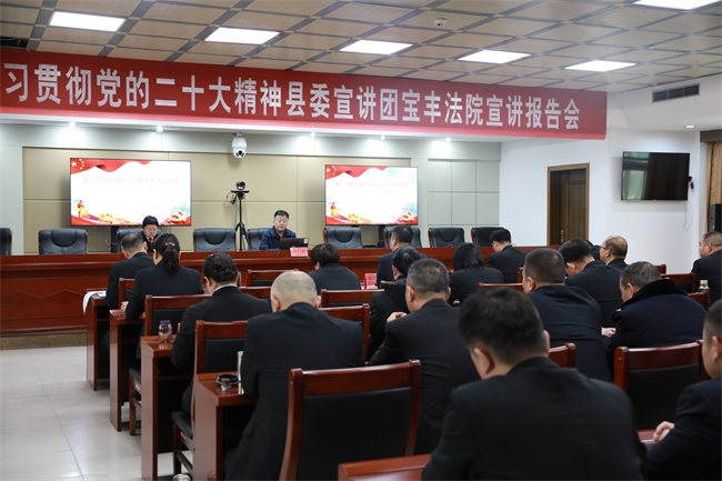 中新河南網(wǎng)3月24日電(董媛媛)按照縣委深入學(xué)習(xí)貫徹黨的二十大精神的統(tǒng)一安排部署,3月23日,寶豐縣人民法院邀請縣委黨校副校長、高級講師郭會展同志開展黨的二十大精神專題宣講,全院再次掀起學(xué)習(xí)宣傳貫徹黨的二十大精神的熱潮。