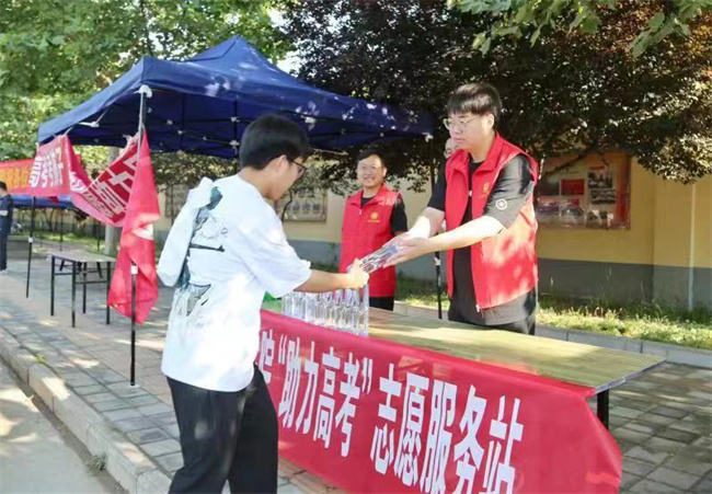 活動現(xiàn)場,志愿者為考生、家長們免費發(fā)放礦泉水、紙巾、濕巾等物品,為他們送去一份清涼愛心,送上最真誠的祝福,幫助考生們排解心理壓力、舒緩緊張情緒,耐心細致解答陪考家長的咨詢,全力護航高考學(xué)子圓夢之路。