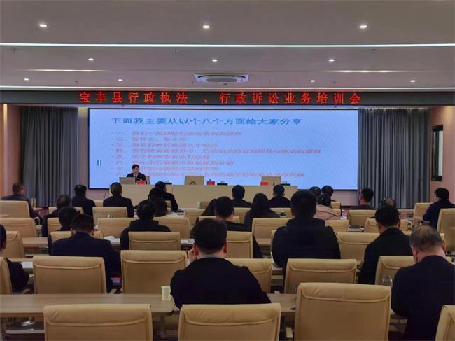 中新河南網(wǎng)(田波濤)為進一步強化法治政府建設(shè),推動依法行政,提高行政執(zhí)法效能,多措并舉有效化解行政爭議,降低行政機關(guān)敗訴率,12月8日下午,寶豐縣人民法院行政綜合庭庭長李應(yīng)敏應(yīng)邀參加縣政府舉行的行政執(zhí)法、行政訴訟業(yè)務(wù)培訓(xùn)會,為縣域內(nèi)具有執(zhí)法權(quán)的行政機關(guān)及各鄉(xiāng)鎮(zhèn)200余名行政執(zhí)法人員進行相關(guān)業(yè)務(wù)指導(dǎo)。