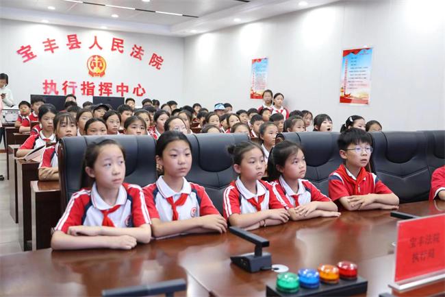中新河南網(wǎng)(董媛媛)為進(jìn)一步提升未成年人的安全意識和法治意識,護(hù)航少年兒童健康成長,5月30日下午,寶豐縣人民法院開展公眾開放日活動,邀請山河路小學(xué)80余名師生走進(jìn)法院,近距離參觀法院,旁聽案件模擬庭審,“沉浸式”感受司法氛圍。