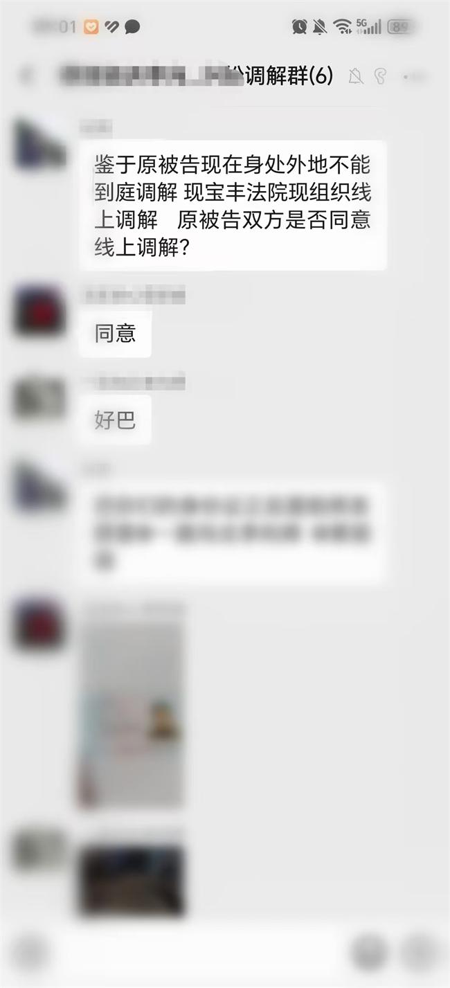 案件受理后,因原被告都在外地?zé)o法趕回來,但是想通過司法程序解決問題。承辦法官在對案情進(jìn)行分析后,本著便民、為民的司法理念,為了節(jié)省當(dāng)事人的訴訟成本,建議雙方當(dāng)事人以線上的方式進(jìn)行調(diào)解。該建議得到原被告雙方的同意,在法官的耐心指導(dǎo)下,經(jīng)過多次溝通,終于建立微信群組,雙方當(dāng)事人有了分別幾年來的首次“云見面”。