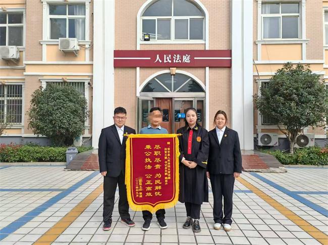 事后,當(dāng)事人李某委托代理人來到大營人民法庭,將一面印著“盡職盡責(zé)為民解憂秉公執(zhí)法公正高效”的錦旗送到案件承辦人王斐法官手中,對法官用心用情調(diào)解,高效化解矛盾表示感謝。
