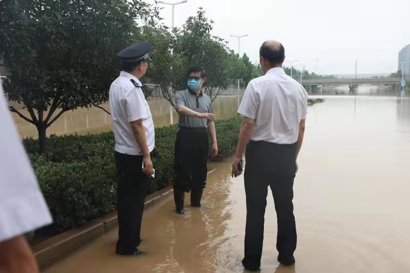 在鄭州市西三環(huán)北延鐵路橋和西三環(huán)隴海鐵路橋,顧雪飛實(shí)地查看了鐵路橋涵和路面積水排放情況,要求公安機(jī)關(guān)配合有關(guān)部門(mén),及時(shí)排除路面積水,盡快恢復(fù)道路暢通。在郭家咀水庫(kù),泄洪導(dǎo)流正在有序進(jìn)行,顧雪飛詳細(xì)詢問(wèn)了防汛搶險(xiǎn)和水庫(kù)周邊群眾疏散情況,要求公安機(jī)關(guān)牢固樹(shù)立“人民至上、生命至上”和“人民公安為人民”的理念,會(huì)同相關(guān)部門(mén)確保群眾生命財(cái)產(chǎn)安全。