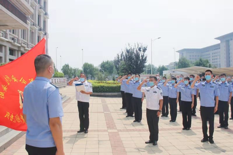 儀式上,在機(jī)場(chǎng)公安局黨委的號(hào)召下,全局70余名青年民輔警挺身而出、主動(dòng)請(qǐng)纓,向組織遞交請(qǐng)戰(zhàn)書,請(qǐng)求將他們安排到任務(wù)最需要的地方去,為堅(jiān)決打贏疫情防控阻擊戰(zhàn)貢獻(xiàn)青春力量。隨后,機(jī)場(chǎng)公安局局長(zhǎng)韓顥為疫情防控青年突擊隊(duì)授旗,要求全體隊(duì)員提高政治站位、強(qiáng)化底線思維、增強(qiáng)責(zé)任意識(shí),將愛(ài)民之心、從警之志化作獻(xiàn)身公安、服務(wù)人民的實(shí)際行動(dòng)。以戰(zhàn)時(shí)的狀態(tài)、戰(zhàn)時(shí)的標(biāo)準(zhǔn)、戰(zhàn)時(shí)的方式,鼓足干勁,高標(biāo)準(zhǔn)高質(zhì)量開(kāi)展疫情防控工作,在沒(méi)有硝煙的戰(zhàn)場(chǎng)上踐行青春使命、奉獻(xiàn)青春力量、展現(xiàn)青春風(fēng)采。最后,青年突擊隊(duì)全體隊(duì)員舉起右拳面向隊(duì)旗莊嚴(yán)宣誓。