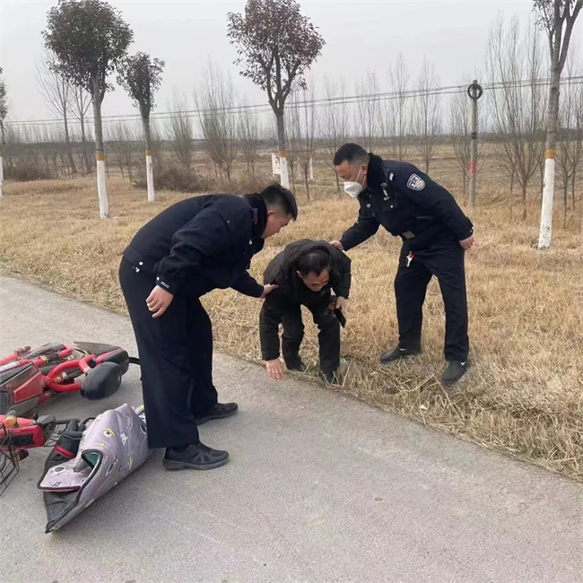 1月21日下午15時左右,原陽縣公安局太平鎮(zhèn)派出所民警值班巡邏時,在太平鎮(zhèn)黃莊村馬路邊發(fā)現(xiàn)一輛電車倒在路上,路邊草叢內(nèi)有一老人倒在地上,民警立即撥打120急救電話并趕忙下車將老人扶起。由于老人酒后說話不清楚,民警逐一聯(lián)系附近村莊村干部,確認(rèn)老人為黃莊村民后立即聯(lián)系其子女。經(jīng)了解,老人在親戚家喝酒后回家時不慎摔倒,久久不能起來。120急救車到現(xiàn)場后對老人進(jìn)行初步檢查,老人身上有明顯刮傷,急救人員對老人的傷口消毒后,待老人兒女趕到后將其接走返回家中。