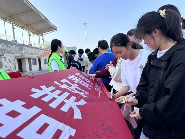 伴隨著金色的夕陽,學(xué)生們紛紛走向簽名條幅,鄭重簽下了自己的名字,提醒自己自覺遠(yuǎn)離毒品,為無毒校園貢獻(xiàn)青春力量。