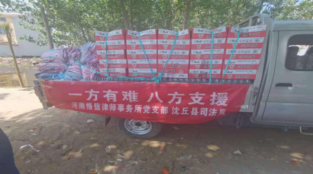 7月25日上午,在沈丘縣司法局黨委委員、副局長趙峰的帶領(lǐng)下,河南恪信律師事務(wù)所張偉、韓海龍、李軍旗等一行人員,不懼炎熱,排除困難,驅(qū)車來到扶溝縣城郊鄉(xiāng)馬村行政村,為受災(zāi)的群眾、堅(jiān)守在抗災(zāi)前線的村干部和救援隊(duì)伍送上方便面、救生圈、礦泉水和夏涼被等必備的救援物資,以緩解他們的燃眉之急。當(dāng)?shù)匕傩者B聲稱贊:在斷水?dāng)嚯、家庭無法居住的困境下,這些物資真的是及時(shí)雨。