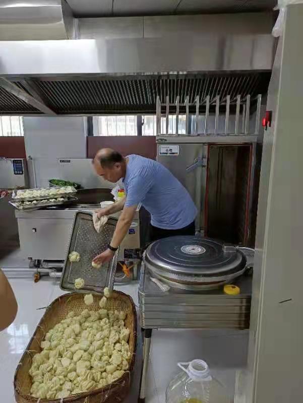 23日晚上劉燕燕、李朝娟、王霜三人通過溝微信溝通準(zhǔn)備為一線防汛人員和受災(zāi)群眾做點(diǎn)什么?三人商量就地取材,利用李朝娟的包子鋪為一線防汛人員和受災(zāi)群眾蒸油卷,所需物資由三人出資。社區(qū)婦聯(lián)主任兼農(nóng)家書屋文化專干劉燕燕利用村婦聯(lián)活動群進(jìn)行宣傳組織,僅僅5個小時的時間收到捐贈面粉1000斤、食用油100斤、大蔥100斤、微信轉(zhuǎn)款3200元、參與蒸油卷的婦女同志達(dá)100余人,有些婦女同志還是自帶工具、蒸籠、面盆、調(diào)料等。由于前方物資緊缺我們設(shè)定了兩個點(diǎn)蒸油卷、點(diǎn)位1在留莊營新區(qū)大院內(nèi)2號點(diǎn)位在市直一幼新二街分園廚房。與新鄉(xiāng)市紅旗區(qū)區(qū)直第三幼兒園領(lǐng)導(dǎo)以及員工攜手支援災(zāi)區(qū)。又增加大米盒飯。