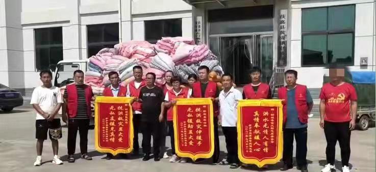 捐贈物資:被子200套(每套包括被子、褥子、床單、枕頭),礦泉水2500件,火腿腸500件,方便面500件,蔬菜2000斤(南瓜、大頭菜、洋蔥),紅梨2000斤,消毒液30桶(大桶),沖鋒舟兩艘每艘價值9000余元(捐贈給西安特種應急救援隊),給災民、救援隊提供飯菜1000余人。